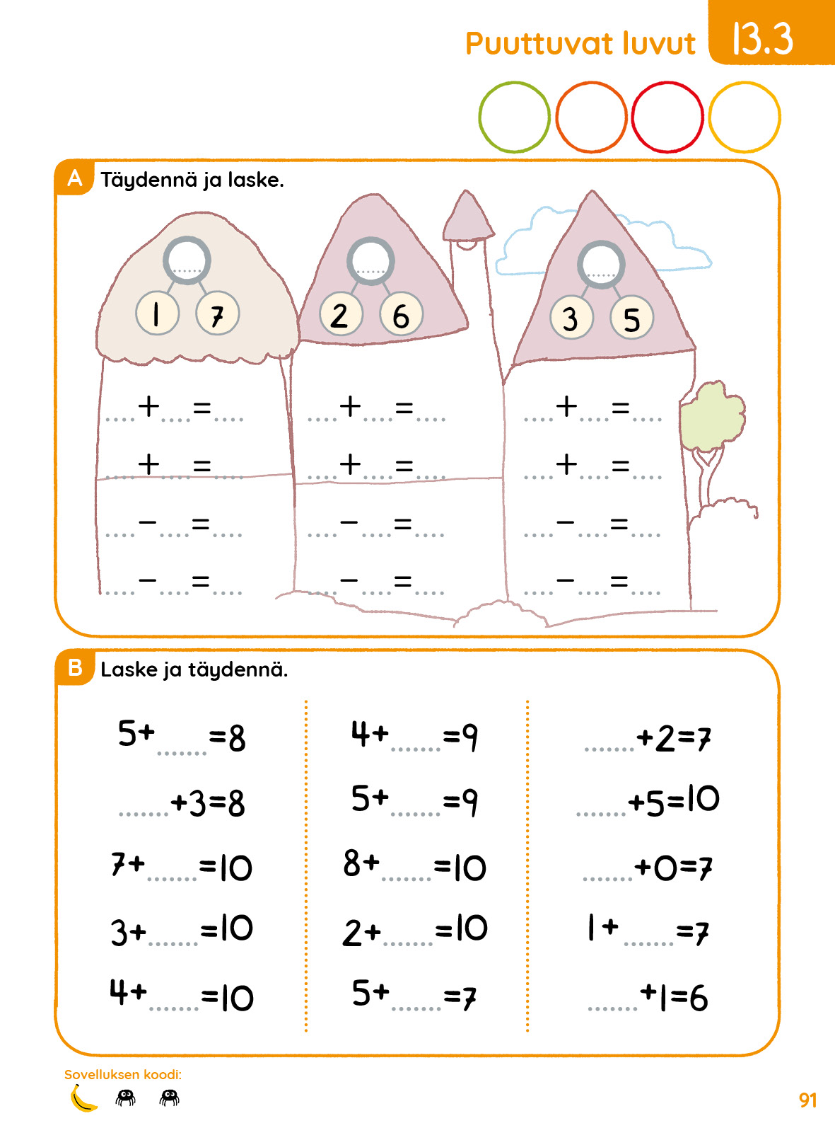 Laske ja vertaile: Puuttuva yhteenlaskettava, 10:een saakka